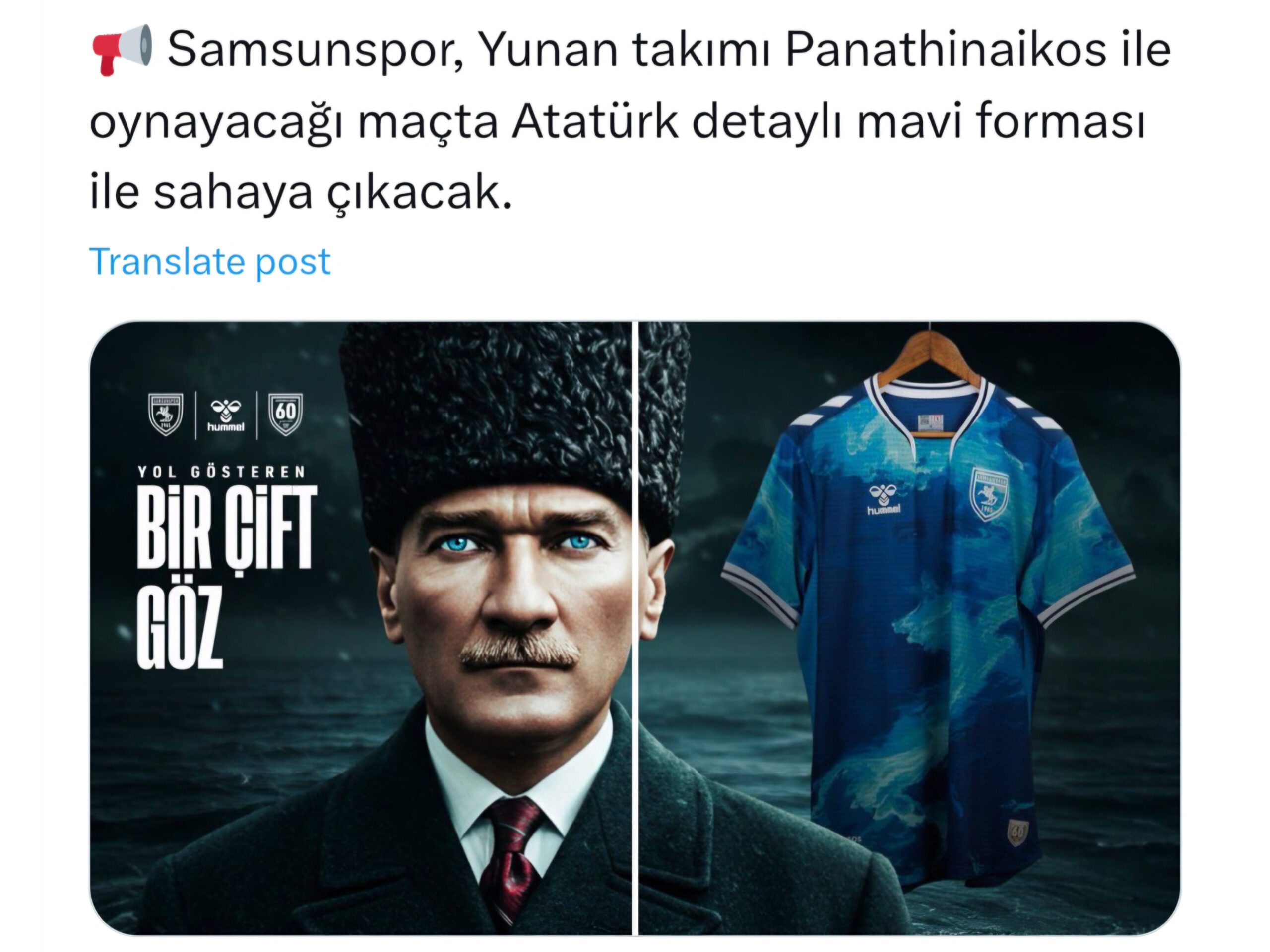Η Σαμσουνσπορ, ομάδα από την πόλη-σύμβολο του κεμαλισμού, ενόψει της ευρωπαϊκής της αναμέτρησης με τον Παναθηναϊκό, δεν περιορίστηκε στον αθλητισμό. Επέλεξε να «ντύσει» τον αγώνα με πολιτικά και εθνικιστικά μηνύματα, τιμώντας τον Μουσταφά Κεμάλ, τον άνθρωπο που ιστορικά αποδεδειγμένα συνδέεται με τον ξεριζωμό και τη Γενοκτονία των Ελλήνων του Πόντου, των Ελλήνων της Μικράς Ασίας της Ανατολικής Θράκης,της Καππαδοκίας των Αρμενίων και των Ασσυρίων.